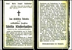 Jungfrau; Herzlähmung; Anhänglichkeit an Geschwister u. Eltern; Herzleiden nötigte sie zur Aufgabe ihres Berufs und zur Rückkehr ins elterl. Haus zu Geschwistern |