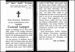 Landwirt; Eltern: Peter Lemper u. Anna Catharina geb. Krücken; 8 Geschwister; mit 14 J. verlor er Vater; Stütze der Mutter in der Landwirtschaft; seit 1896 Mitgl. Kirchenvorstand; schmerzhaftes Darmleiden |