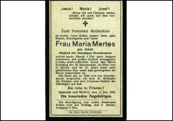 52 J.; 23 J. verh.; langes, schweres Leiden; Mitgl. d. lebenden Rosenkranzes; Angehörige auch in Wittlich |