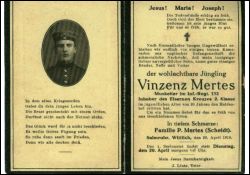 Gefallener 1. Weltkrieg; 20 J.; Eltern: P. Mertes u. Maria geb. Scheidt in Salmrohr; Angehörige auch in Wittlich; Gewißheit über Tod des Sohnes erst nach achtmonatigem Bangen |