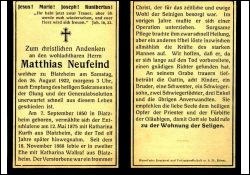 ∞ 12.5.1875 Katharina Kurth aus Blatzheim, † nach 11 J.; ∞ 18.11.1888 Katharina Wallraf aus Blatzheim; 8 überlebende Kinder |