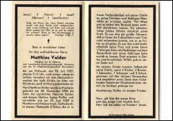 Mitgl. St. Albanusu. Leonardus-Schützenbruderschaft Manheim u. St. Matthias-Bruderschaft Berrendorf; Eltern: Heinrich Valder u. Agnes geb. Peiffer; ∞ 20.6.1939 in Manheim Helene Irnich; 2 Söhne; Landwirt; |