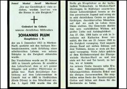 Hauptlehrer i.R.; Ausbildung Lehrerseminar Linnich; 1895 Lehrer in Hochkirchen, ab 1.4.1900 36 J. Hauptlehrer in Moeken-Harff; ∞ 27.10.1900 in Irresheim Katharina Esser; 10 K.; Mitgl. Kirchenvorstand |
