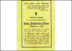 ∞ 27.10.1900 Johannes Plum, Hauptlehrer in Morken-Harff; 10 K. |