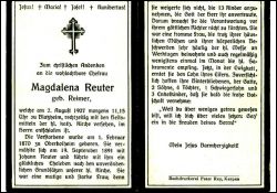 ∞ 19.9.1891 Johann Reuter; 13 K., davon überlebten sie 6 |