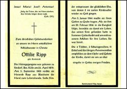 ∞ 5.9.1905 Heinrich Ripp aus Blatzheim, † 5.1.1944; 6 K., davon 2 früh † |