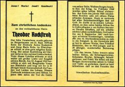 Eltern: Anton Rockstroh u. Anna Maria Rohs (Roß); Gärtner, verlor rechten Unterschenkel; ∞ 12.8.1910 Margarethe Vosen aus Blatzheim, † 1942; 2 Söhne; 1944 zerstörten Bomben sein Anwesen; legte 1913 Blatzheimer Friedhof an u. betreute ihn 20 J. lang |