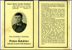 Gefallener 2. Weltkrieg; Eltern: Nikolaus Schäfer u. Margaretha geb. Greuel; Landwirtschaft; 31.9.1941 Einberufung (wie vorher schon 3 ältere Brüder); nach schwerer Verwundung Bein amputiert, Stunden später † |