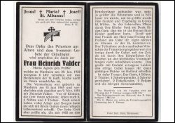 ∞ 9.11.1891 in Manheim Heinrich Valder; 12 K., davon 6 †; seit 1925 an das Krankenkager gebunden |