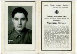 Gefallener 2. Weltkrieg; Eltern: Daniel Steven u. Agnes geb. Dahl; ; zunächst als Landhelfer tätig, dann in Holzindustrie; 22.6.1942 Einberufung; Heldenfriedhof in Pustoschka, 40 km südl. Sapelje |