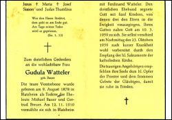 Eltern: Michael Bauer u. Gertrud geb. Breuer; ∞ 12.11.1910 in Blatzheim Ferdinand Watteler, † 10.3.1959; 5 K., davon 3 † |