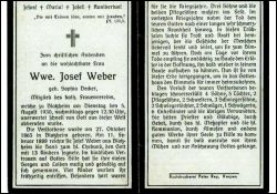 ∞ 11.2.1888 Josef Weber aus Blatzheim, † 1944; 13 K., davon 4 früh †; 3 Söhne u. die beiden Pflegesöhne als Soldat im 1. Weltkrieg |