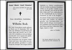 Eltern: Leopold Bock u. Maria geb. Kutsch; ∞ 15.10.1921 Helene von der Kall; 2 K.; Krankheit in den letzten Jahren |