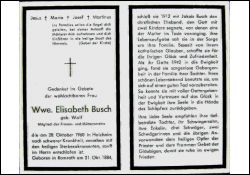 ∞ 1912 Jakob Busch, † 1942; 2 K., davon 1 †; lebte als Witwe bei der Tochter |