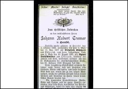 ∞ 11.11.1877 Elisabeth Küppers aus Büderich, †; ∞ 10.8.1885 Agnes Holzschneider aus Osterath; 2 überlebende Kinder |