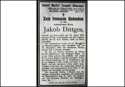 ∞ 15.11.1904 Katharina Welter; 5 K.; langwierige Krankheit, sehr schweres Leiden |