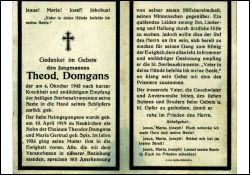 Jungmann; Eltern: Theodor Domgans u. Maria Gertrud geb. Spix; quälendes Leiden |