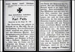 Gefallener 1. Weltkrieg; Ehrenfriedhof Proyart |