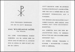 58 J. verh. mit Jakob Mörs, † 8.3.1969; 3 K.; lebte ihr ganzes Leben lang im Schatten des Domes |