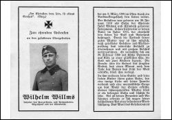 Gefallener 2. Weltkrieg; Eltern: Josef Willms, im 1. Weltkrieg 1915 gefallen, u. Elisabeth geb. Heinzmann; ∞ 28.2.1940 Käthe Dammers aus Köln; 2 K. (jüngster Sohn 1 Mon. nach Tod des Vaters geboren) |