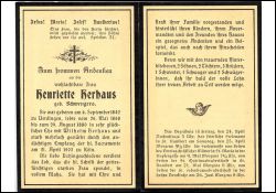 ∞ 26.5.1868 Wilhelm Herhaus, † 29.8.1880; 4 überlebende Kinder |