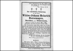 ∞ Johann Heinrich Dorsemagen, † vor 13 J.; 42 1/2 J. Ehe, danach 13 J. Witwe |