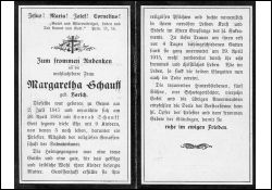 ∞ 20.4.1869 Konrad Schauff, † ; 9 K., davon 4 †; 1 Sohn Salvatorianerpater; ihr mann 4 Tage vorher † |