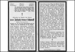 Schneidermeister; Mitgl.d. St. Cornelius-Bruderschaft; Sohn Priester; ∞ 22.5.1897 in Geyen Cäcilia Drahts, †; 9 K., davon 6 †; |