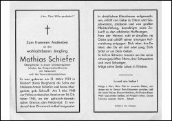 Gefallener 2. Weltkrieg; Eltern: Anton Schiefer u. Anna Margarete geb. Schauff; am 1.5.1940 zu den Fahnen gerufen |