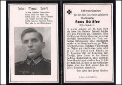 Gefallener 2. Weltkrieg; Eltern: Heinrich Schiffer u. Elisabeth geb. Lorchheim (Geyen?); nach Reifeprüfung im elterlichen Unternehmen; bei Kriegsausbruch zur Wehrmacht |
