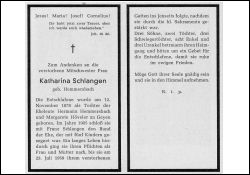 Eltern: Hermann Hemmersbach u. Margarete geb. Höveler; ∞ 1905 Franz Schlangen, † ; 5 K. |