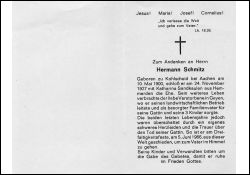 ∞ 24.11.1927 Katharina Sankaulen aus Hemmerden; landwirtschaftl. Betrieb in Geyen; 3 K.; in den beiden letzten J. schweres Herzleiden |