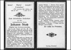 Mitgl. d. Kirchenvorstandes in Geyen; längeres Leiden; ∞ 1880 Anna Maria Brüggen, † ; 4 K., davon 1 Sohn jugendl. †; ∞ 1893 Agnes Weber |
