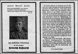 Gefallener 2. Weltkrieg; Eltern: Heinrich Kessenich u. Anna Maria geb. Holz; ∞ 10.5.1939 Sofia Lintermann aus Grefrath; russische Gefangenschaft; Todesnachricht erreicht die Familie erst am 15.1.1948 |