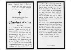 ∞ 9.1.1897 Georg Kaiser aus Widdersdorf, † 20.4.1944; 6 K., davon 1 Sohn im 2. Weltkrieg gefallen; |