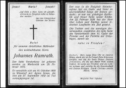 ∞ 10.10.1905 in Wiesdorf Agnes Seven, † 27.9.1932; 1 überlebende Tochter |
