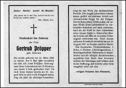 ∞ 8.5.1894 Josef Pröpper, † 31.8.1914; 10 K., davon 3 früh †; n. Tod des Mannes sorgte sie allein für die große Familie u. verschaffte jedem Kind einen Lebensberuf |