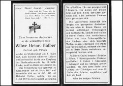 ∞ 16.7.1892 Heinrich Halber, † 5.7.1919; 7 K., davon 3 früh †; ältester Sohn im 1. Weltkrieg gefallen; |
