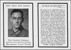 Gefallener 2. Weltkrieg; Eltern: Johann Niehl u. Anna Maria geb. Esser; 1941 Einberufung; Funker; am 26.2.1945 b. Petersdorf OS schwer verwundet; Divisionsfriedhof Freistadt OS |