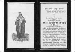 Gutsbesitzerin zu Freimersdorf; ∞ 31.12.1844 Peter Mathias Pingen, Gutsbesitzer in Freimersdorf, † 18.5.1874; 8 K., davon 1 †; ; in den letzten Lebensjahren Prüfungen und Leiden |