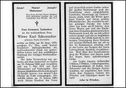 ∞ 7.5.1872 Karl Schumacher auf Vinkenpütz, † 15.1.1889; 12 K., davon 5 †; nach Tod des Mannes verwaltete sie das Gut; |