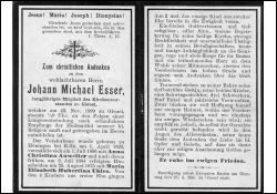 Lungenentzündung: langjähr. Mitgl. d. Kirchenvorstandes zu Gleuel; ∞ 1.7.1856 Anna Christina Auweiler, † 2.6.1864; 4 K., davon 2 † ∞ 25.8.1875 Maria Elisabeth Hubertina Uhles; 1 K., † |