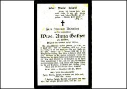 ∞ 22.11.1869 in Uerdingen Johann Gather, † 7.1.1895; 4 K., davon 1 †; zunächst wohnhaft in St. Hubert, in den letzten Jahren in Kempen |