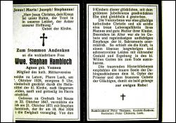 ∞ 21.10.1871 Stephan Hambloch, † 18.5.1924; 9 K., davon 4 †; Mitgl. Mütterverein |