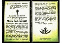 Jungfrau; Mitgl. Marian. Jungf.-Kongregation; Vater früh †; Stütze der Mutter u. jüngeren Geschwister; lange Krankheit |