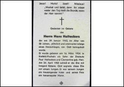 Herzschlag; Eltern: Paul Holtackers u. Clementine geb. Herr; ∞ 24.4.1953 Irmgard Robens; 1 Sohn |