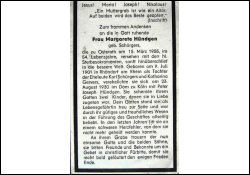 Eltern: Karl Schürgers u. Katharina geb. Gervers; ∞ 23.8.1930 im Dom zu Köln Peter Joseph Hündgen; 2 K. |