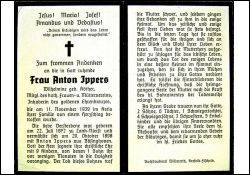 ∞ 29.10.1898 Anton Ippers aus Bösinghoven; 9 K., davon 1 Sohn vor wenigen Monaten †; Druck in Krefeld-Fischeln |
