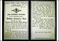 Längeres Leiden; ∞ 15.4.1863 Heinrich Kox, † 7.4.1903; 7 K., davon 4 †; 1 Sohn im 1. Weltkrieg gefallen; |