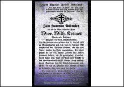 ∞ 9.1.1923 Wilhelm Kremer, † vor 5 J.; in den letzten Jahren schweres Leiden |